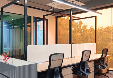 We handle partitions, false ceilings, flooring, painting, wall finishes, modular and custom furniture, toilets, pantry counters, signage, and branding integration — ensuring seamless execution as per approved plans.